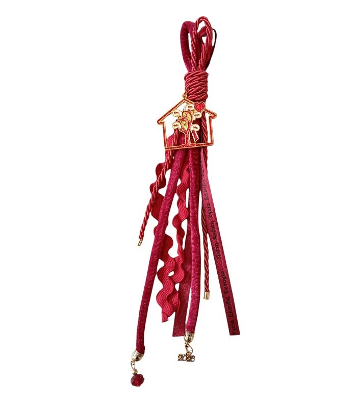 Γούρι 2026 χρυσά στοιχεία μπορντώ κορδόνι