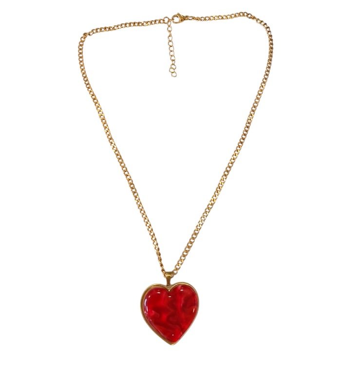 Κολιέ Ατσάλι Χρυσό με πέτρα Μπορντώ-Κόκκινο χρώμα σχέδιο Καρδιά