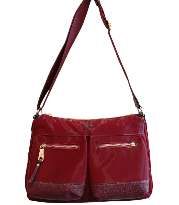 Τσάντα Pepe Moll από συνθετικό δέρμα σε Μπορντώ χρώμα και με επιπλέον μακρύ λουράκι.